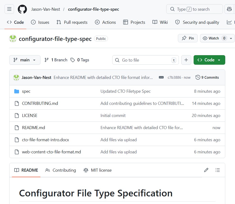 Big, New Configurator File Type Progress: announcing the .cto file type's Specification, Git Repository, & Updated Whitepaper