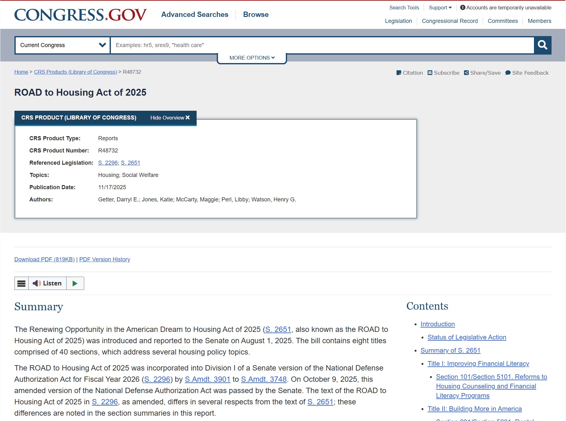 The Center for Offsite Construction supports the ROAD to Housing Act’s intent to treat housing supply as urgent national infrastructure, and applauds its push toward repeatable, scalable delivery through offsite production, innovation grants, and pre-reviewed pathways. But the bill risks recreating fragmented, program-by-program pilots that still force manufacturers and builders into bespoke coordination—slowing adoption and blocking interoperability—because it implicitly gestures toward Configure-to-Order (CTO) without naming or building the market infrastructure CTO requires. To make the Act’s ambition cohere, Congress should explicitly fund CTO-enabling infrastructure: accelerate ANSI-accredited interface standards, pull conforming products through federal procurement first to create reliable demand and performance data, then use incentives to open those catalogs and interfaces to private builders at scale.